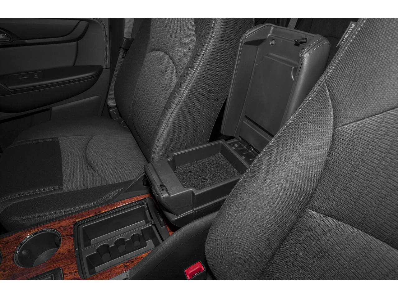 - Console, front center with 2 cup holders, covered storage bin and sliding armrest with storage