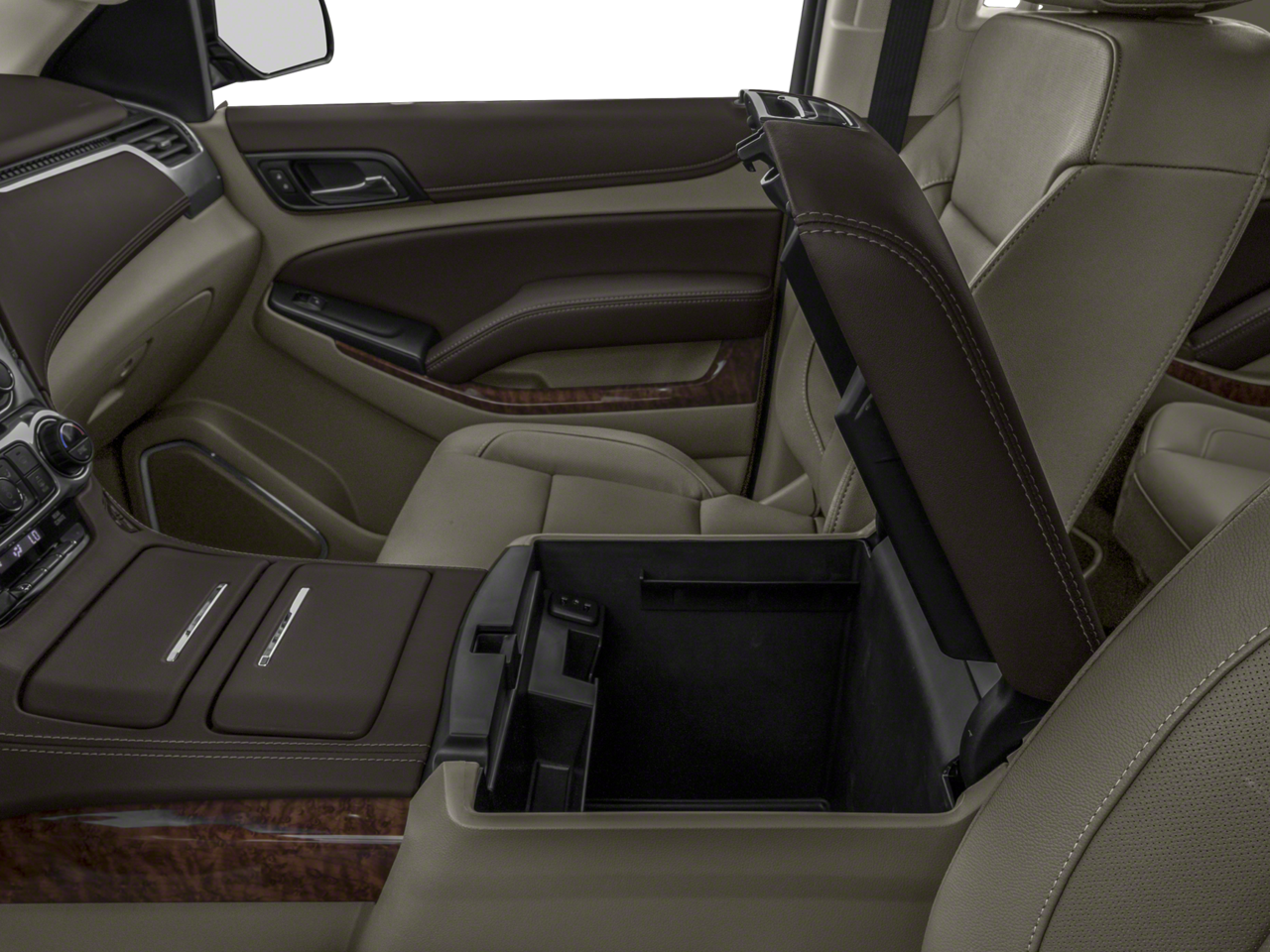 - Console, floor with storage area, cup holders and auxiliary jack